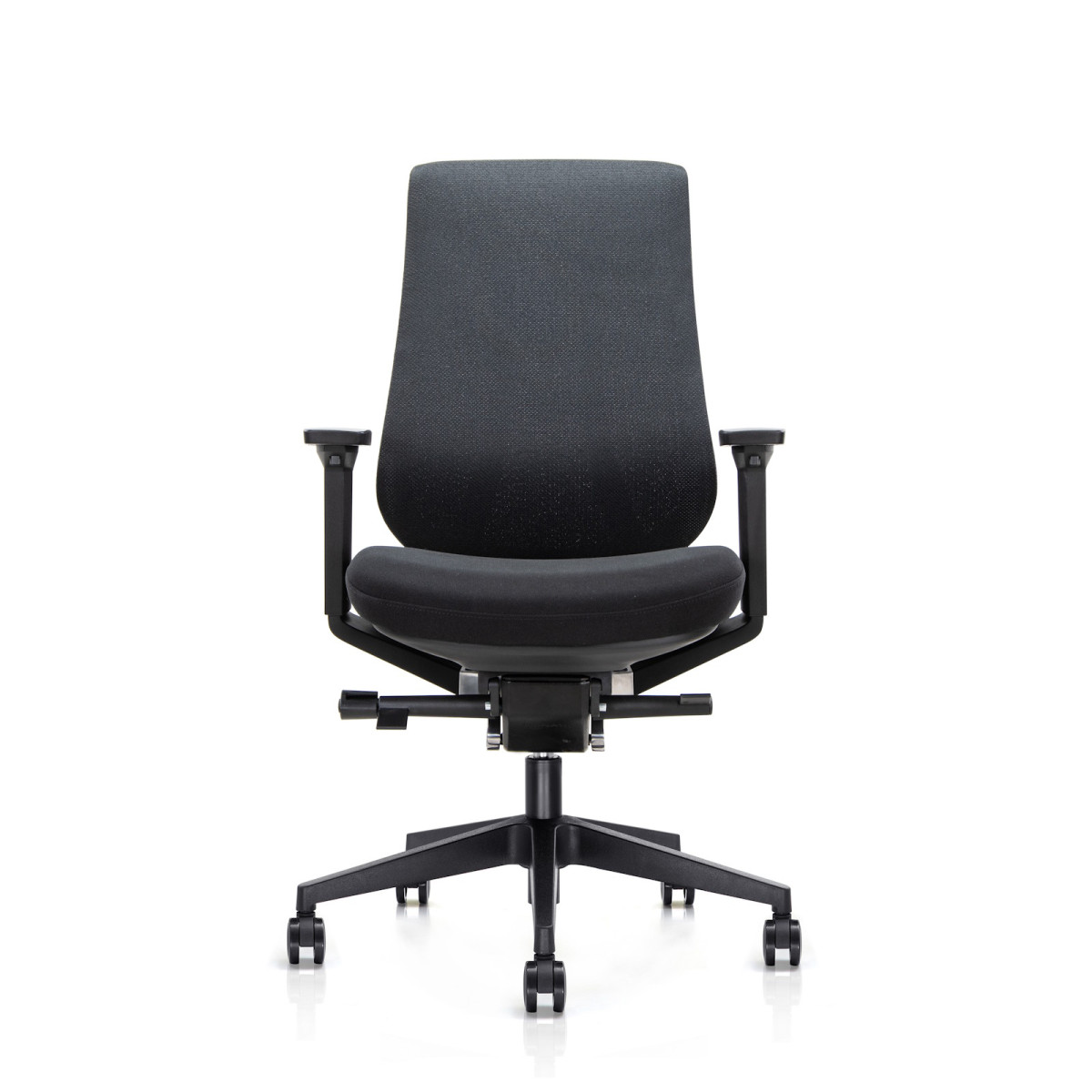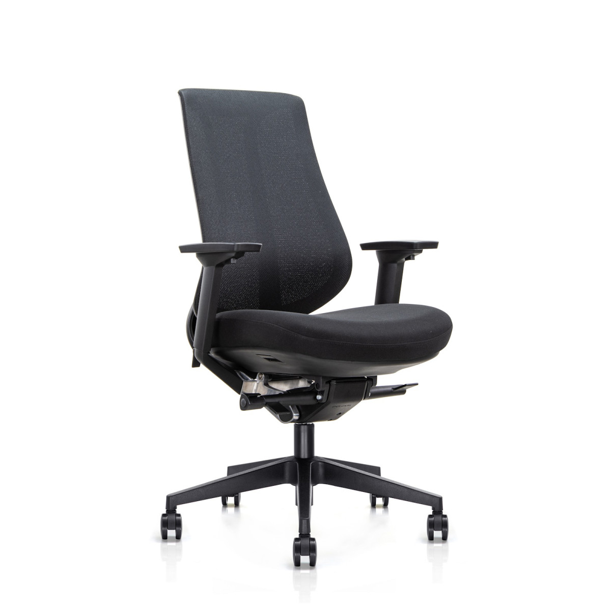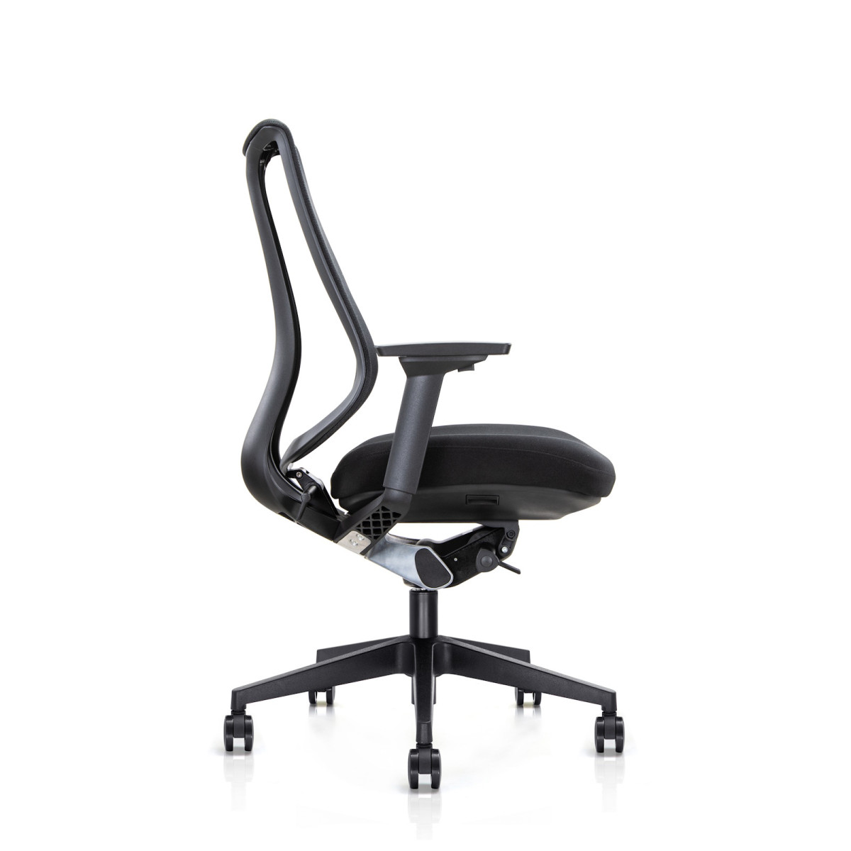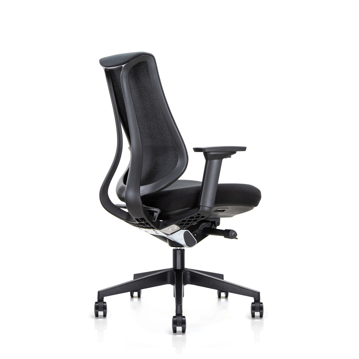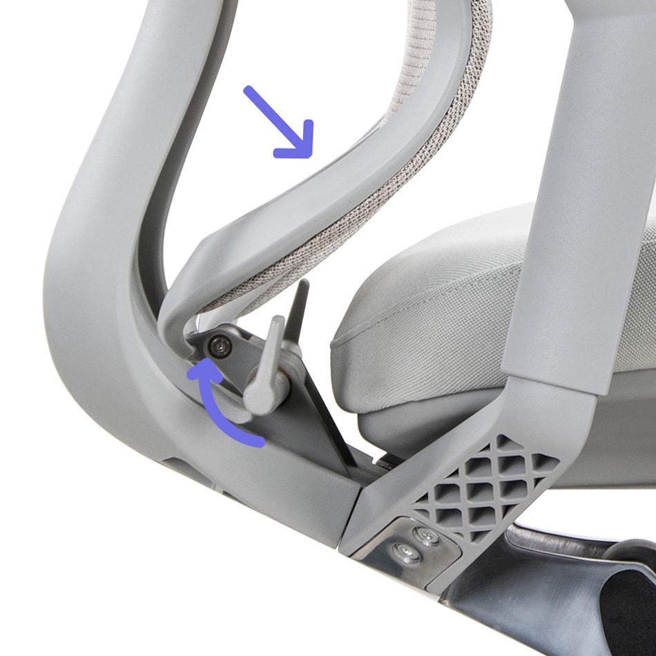 Η πλάτη γέρνει ελαφρώς προς τα εμπρός, προσφέροντας πιο ενεργή στήριξη στη μέση. Με τον εργονομικό μοχλό ρυθμίζετε εύκολα τη γωνία, ώστε να προσαρμόζετε την ένταση της υποστήριξης ακριβώς όπως τη χρειάζεστε.