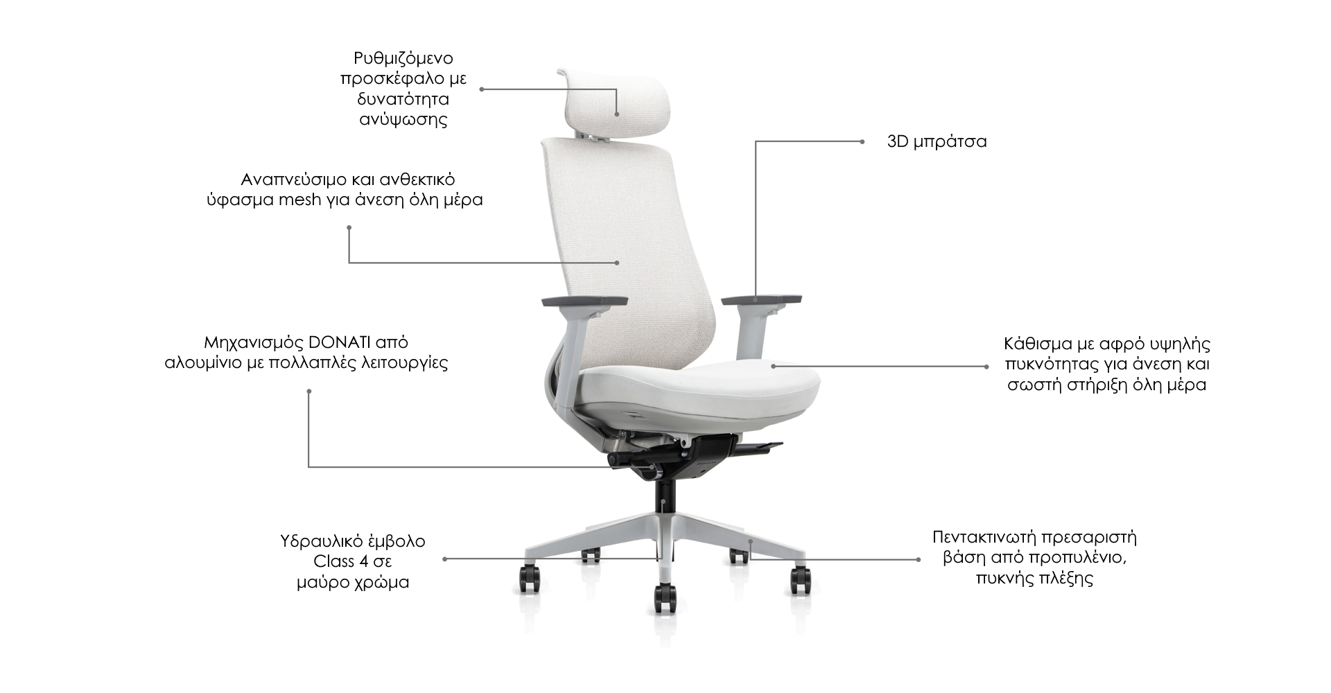 Τα μπράτσα ρυθμίζονται σε ύψος, μετακινούνται μπρος-πίσω και περιστρέφονται αριστερά-δεξιά για απόλυτη προσαρμογή.